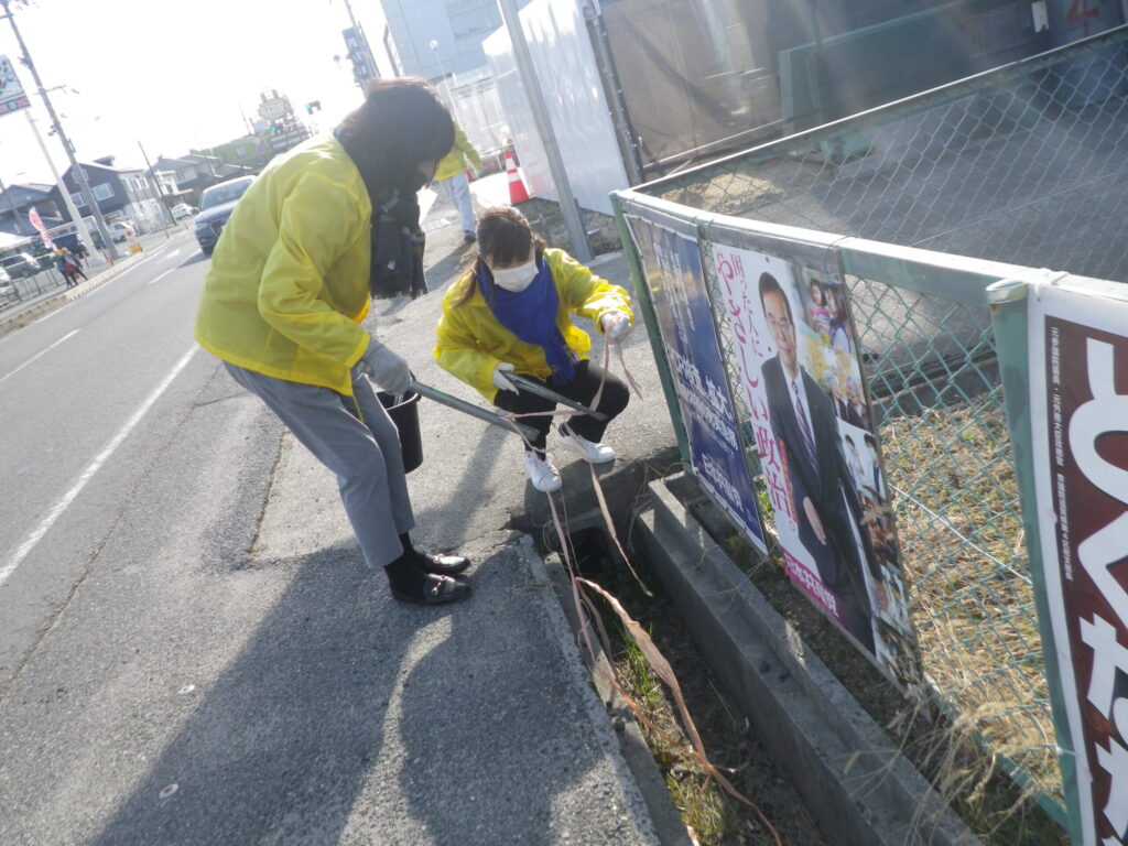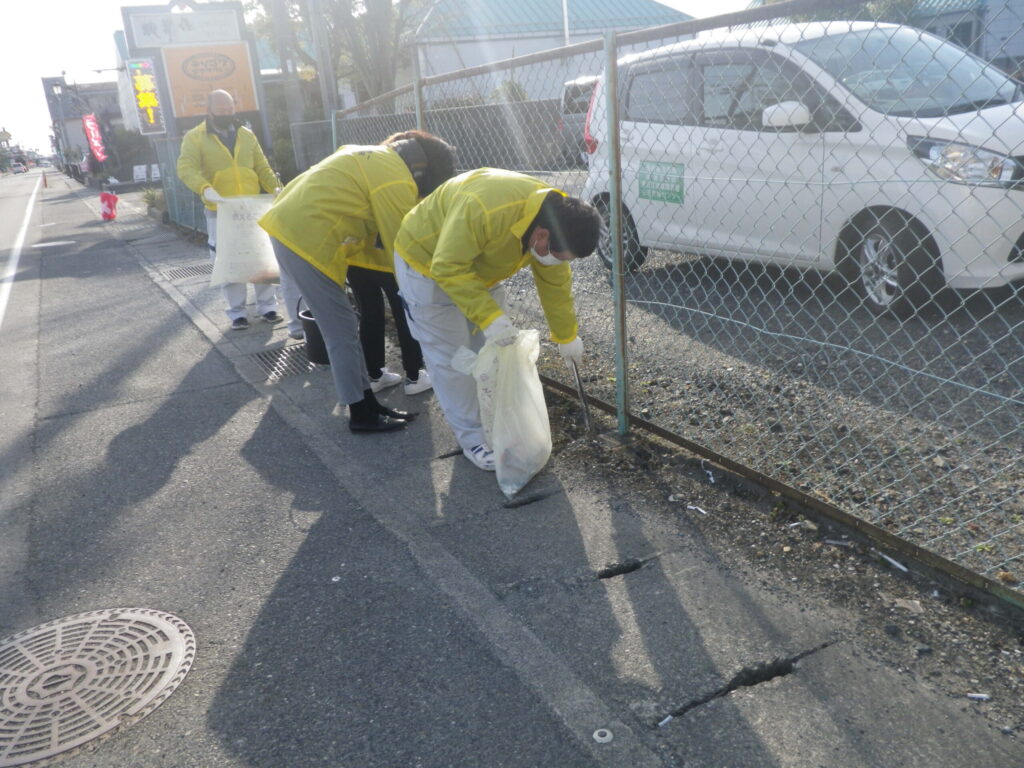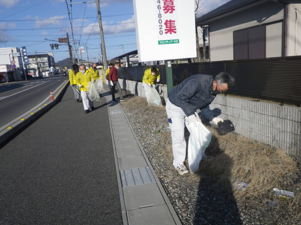 会社前の主要道沿い(十王町~加茂町)にて、ごみ拾いを実施しました。